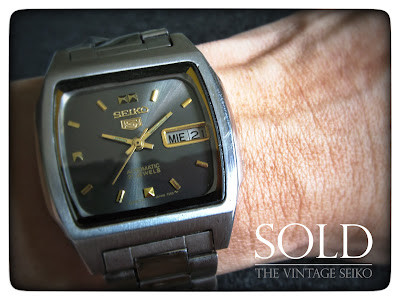 Presented with a NOS aftermarket steel bracelet, the watch looks almost brand new. What's also worth noticing are how the left and right frame of the watch have been painted gold to differentiate it from the regular odd-cased Seiko 5s.